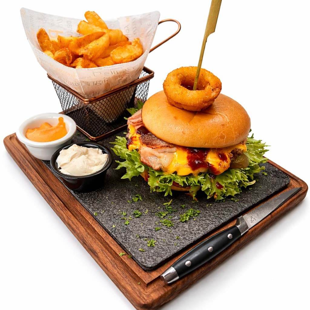 Menu / Black Angus Burgers Puuhiiligrillistä / 1. CHEESE BURGER 1. CHEESE BURGER19,90 € Angushärän kokolihapihvi 200 g, cheddarjuusto, tomaatti, ketsuppi, suolakurkku, rapea salaatti, sipuli, dippi, kouruperunat Valitse koko LISÄTIEDOT TILAUKSEEN LISÄTIEDOT Product price: 19,90 € Total options: Order total: 1. CHEESE BURGER määrä Lisää ostoskoriin Osasto: Black Angus Burgers Puuhiiligrillistä Tutustu myös 5. GRANDE BURGER0 5:stä 24,90 € Lisää ostoskoriin 4. CHICKEN BURGER0 5:stä 19,90 € Lisää ostoskoriin 3. HOT HABANERO BURGER0 5:stä 19,90 € Lisää ostoskoriin 2. NEW YORK BURGER0 5:stä 19,90 € Lisää ostoskoriin